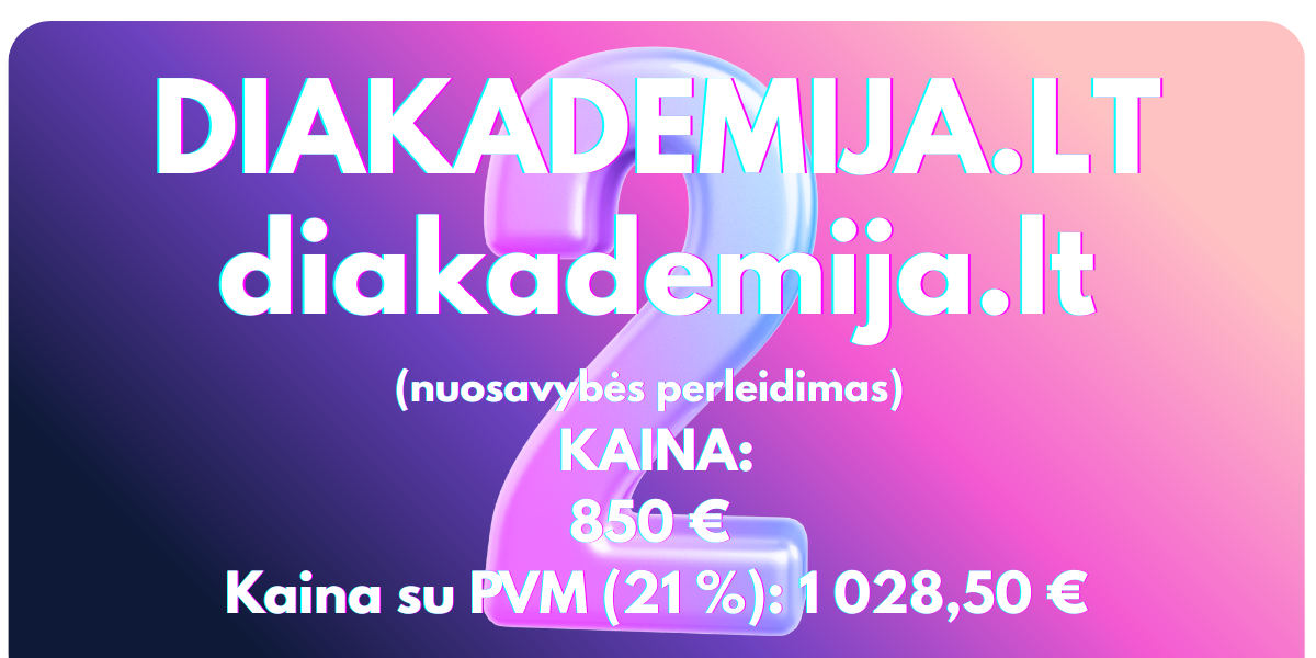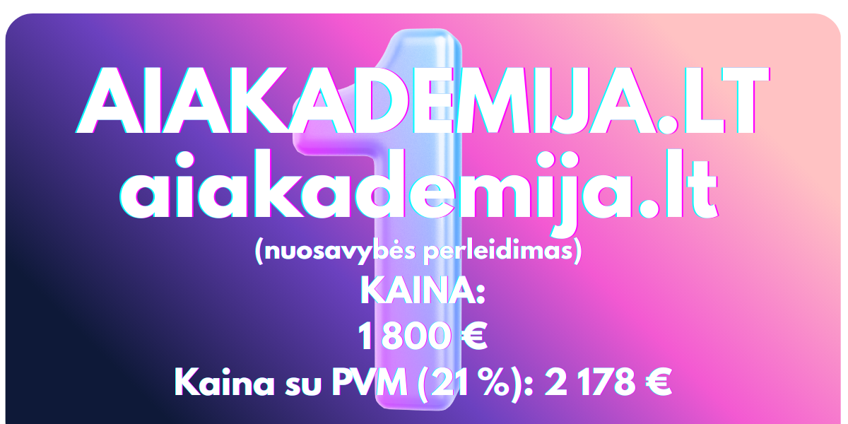aiakademija.lt – stiprus ir aiškus domenas dirbtinio intelekto mokymų vedimo verslui. Tinka edukaciniams projektams, kurie kuria struktūruotas AI mokymo programas, ugdo praktinius įgūdžius ir ruošia žmones dirbti su dirbtiniu intelektu realiose verslo situacijose.